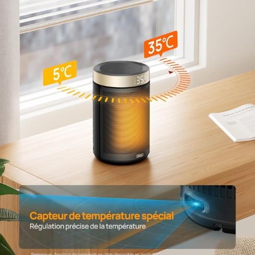 Équipé d’une protection contre la surchauffe, d’un arrêt automatique en cas de chute et d’un fonctionnement silencieux, ce chauffage assure un confort sûr et paisible, idéal pour la chambre, le salon ou le bureau.
