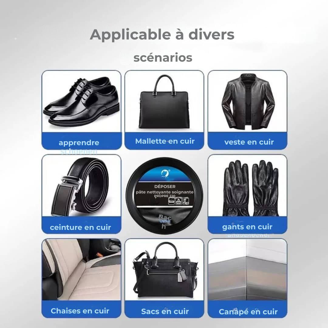 Formule sûre : Adaptée à une utilisation fréquente sur le cuir et le plastique.