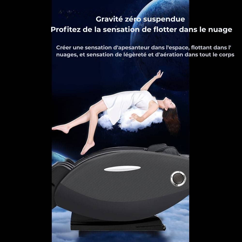 Le fauteuil inclut une thérapie thermique au niveau du bas du dos et des cuisses, favorisant la circulation sanguine, soulageant les douleurs musculaires et prodiguant une chaleur apaisante. Une solution idéale pour détendre les tensions après une longue journée.