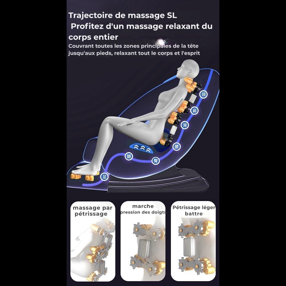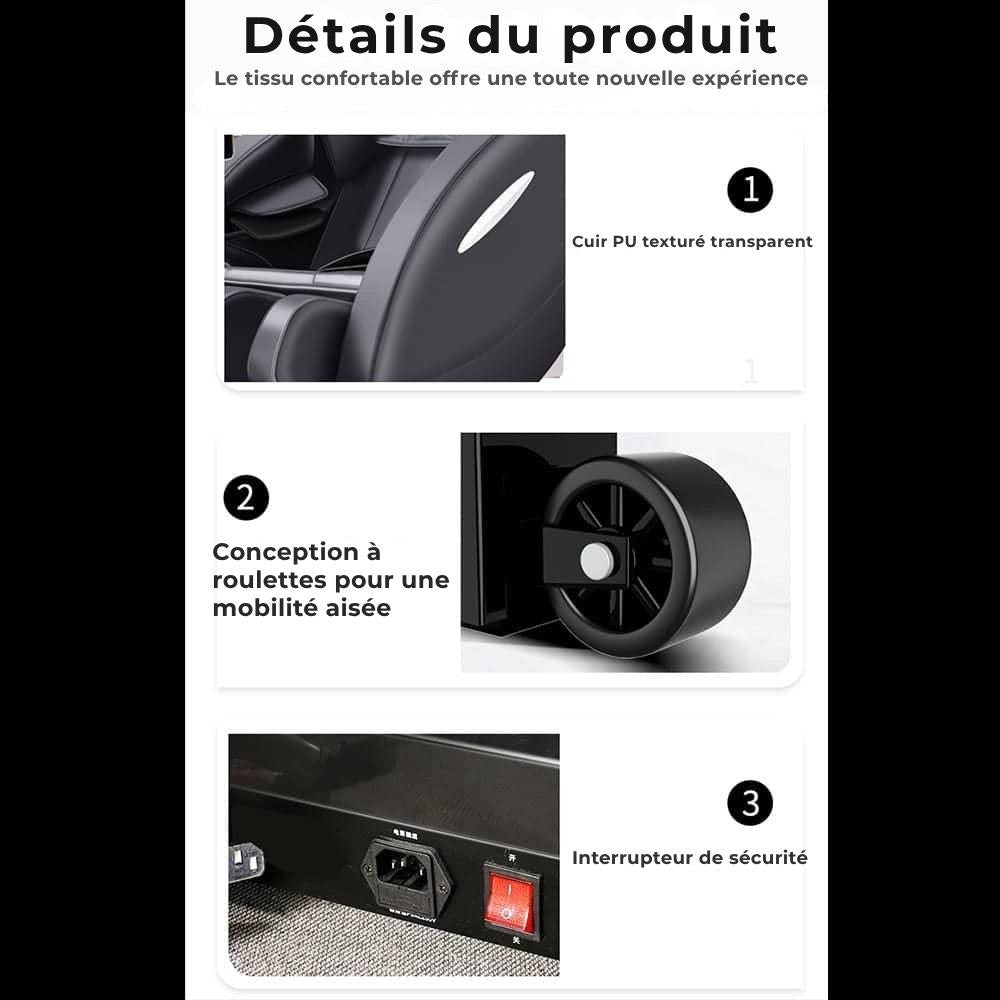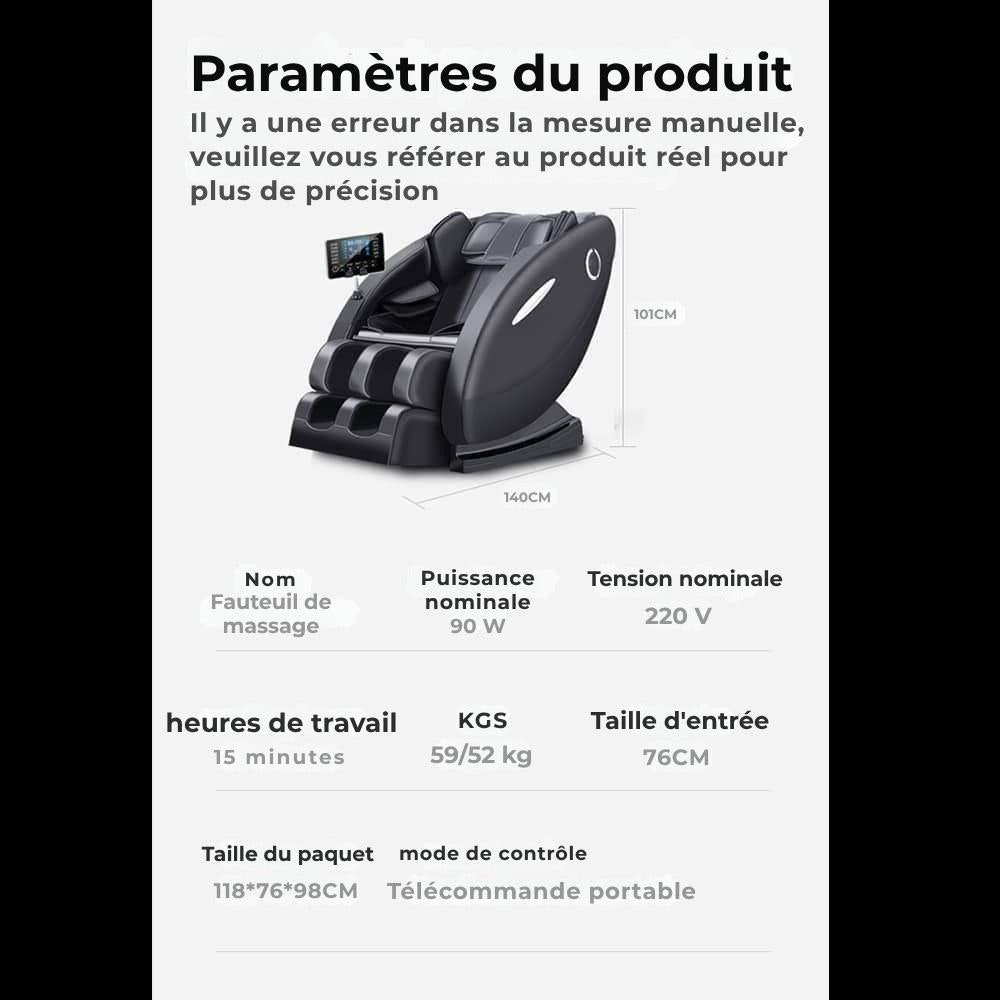 Imaginez un quotidien sans stress ni tensions. Avec le fauteuil de massage A5, nous apportons le luxe et la technologie avancée directement chez vous. Ce fauteuil n’est pas seulement une chaise de massage – c’est votre oasis personnelle de détente et de bien‑être.