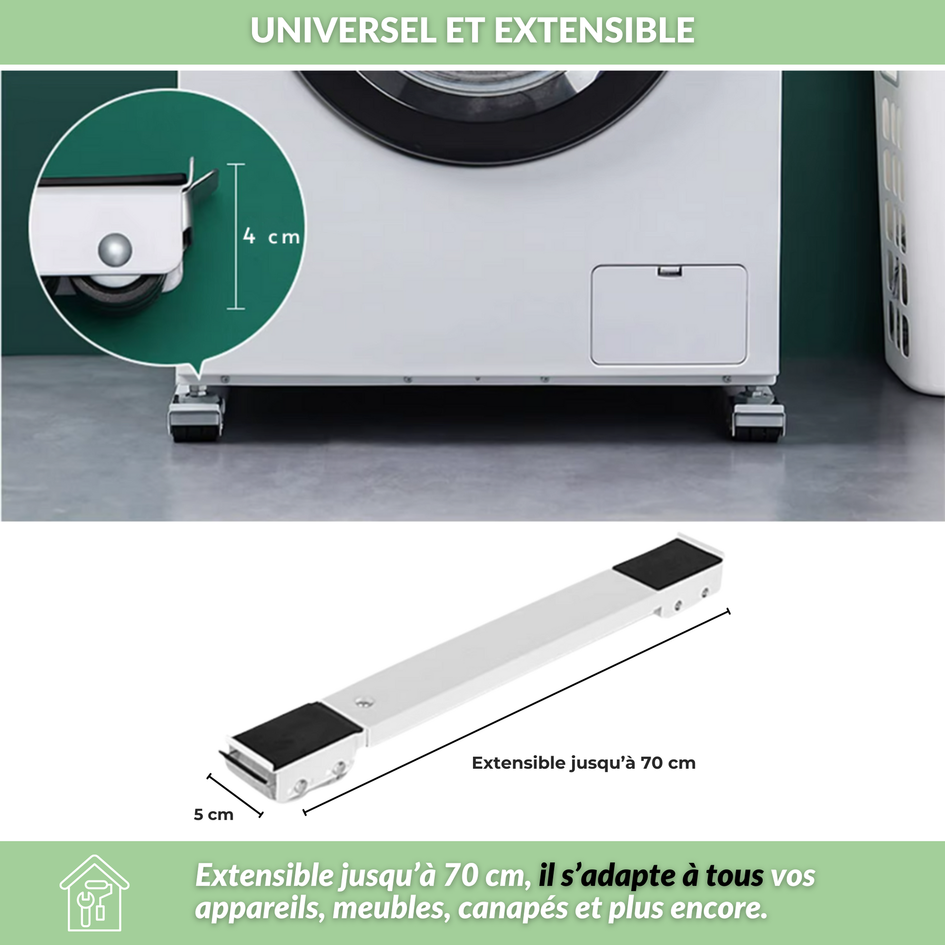 Grâce à ses roues avec freins, Glisséo reste bien en place et assure une parfaite stabilité même quand vos électroménagers sont en fonctionnement.