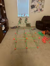 Grâce au système d’emboîtement intelligent, tout reste bien en place. L’ensemble devient encore plus stable avec une couverture posée dessus – parfait pour cabanes, châteaux ou fusées !
