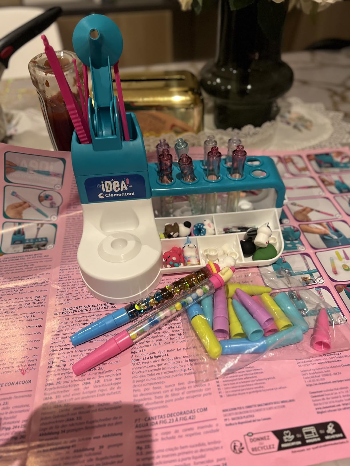 Ce kit permet de concevoir, assembler et décorer des stylos entièrement personnalisés. Il comprend tous les éléments nécessaires — corps de stylos, capuchons, encres et décorations — afin que chaque création soit unique. Parfait pour les enfants et les adultes qui aiment les activités manuelles.