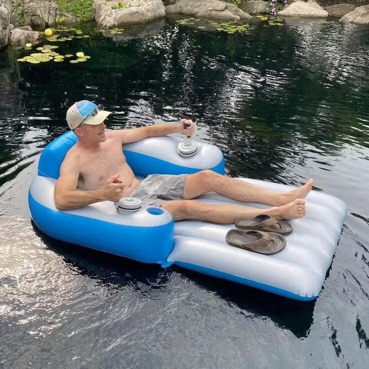 Matériau PVC durable de 0,35 mm, pouvant supporter jusqu'à 136 kg. Comprend un dossier haut, un dossier bas et un porte-gobelet parfaitement positionné. Montage en quelques minutes seulement!