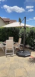 • Montage facile, belle surface d’ombre et le fait de pouvoir le basculer fait double usage ombre et brise vue, j’ai ajouté un système de retenue pour les jours de vent ça à l’air de tenir. Très satisfaite