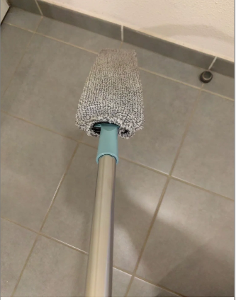 • Le manche s'étend bien et la tête attrape la poussière sans rien laisser. Je l'utilise pour les plinthes, sous le canapé, même entre les vitres coulissantes. Facile à laver, top !