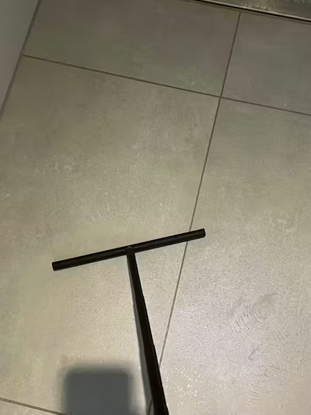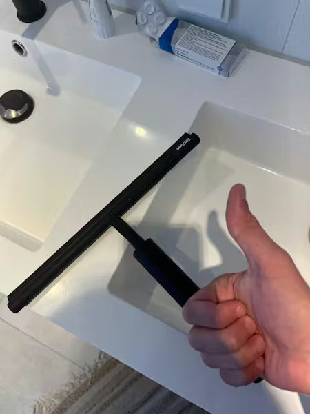 En retirant l’eau des carreaux et du verre juste après la douche, vous évitez que les gouttes sèchent et laissent du calcaire. Racler régulièrement = moins frotter !