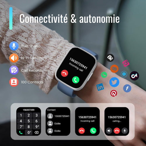 Grâce à la connectivité Bluetooth et la possibilité de passer des appels sur la montre, vous restez connecté sans avoir le téléphone constamment à portée. L’autonomie annoncée permet plusieurs jours d’utilisation avec une seule charge.