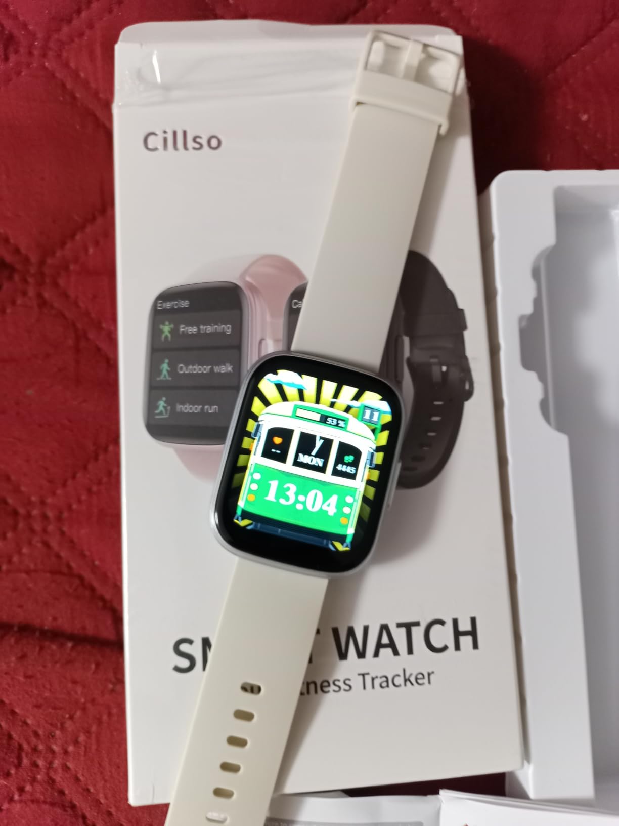 La montre arbore un écran 1,95 ” HD (ou selon variante) offrant une excellente lisibilité même en lumière forte. Son design moderne et élégant s’intègre aussi bien dans le cadre sportif que dans une tenue de tous les jours. (Basé sur descriptions de montres Cillso)